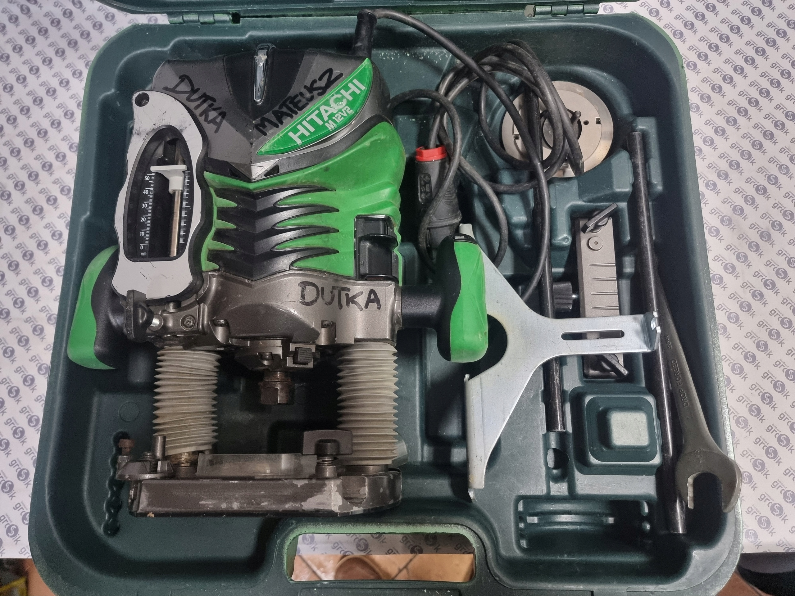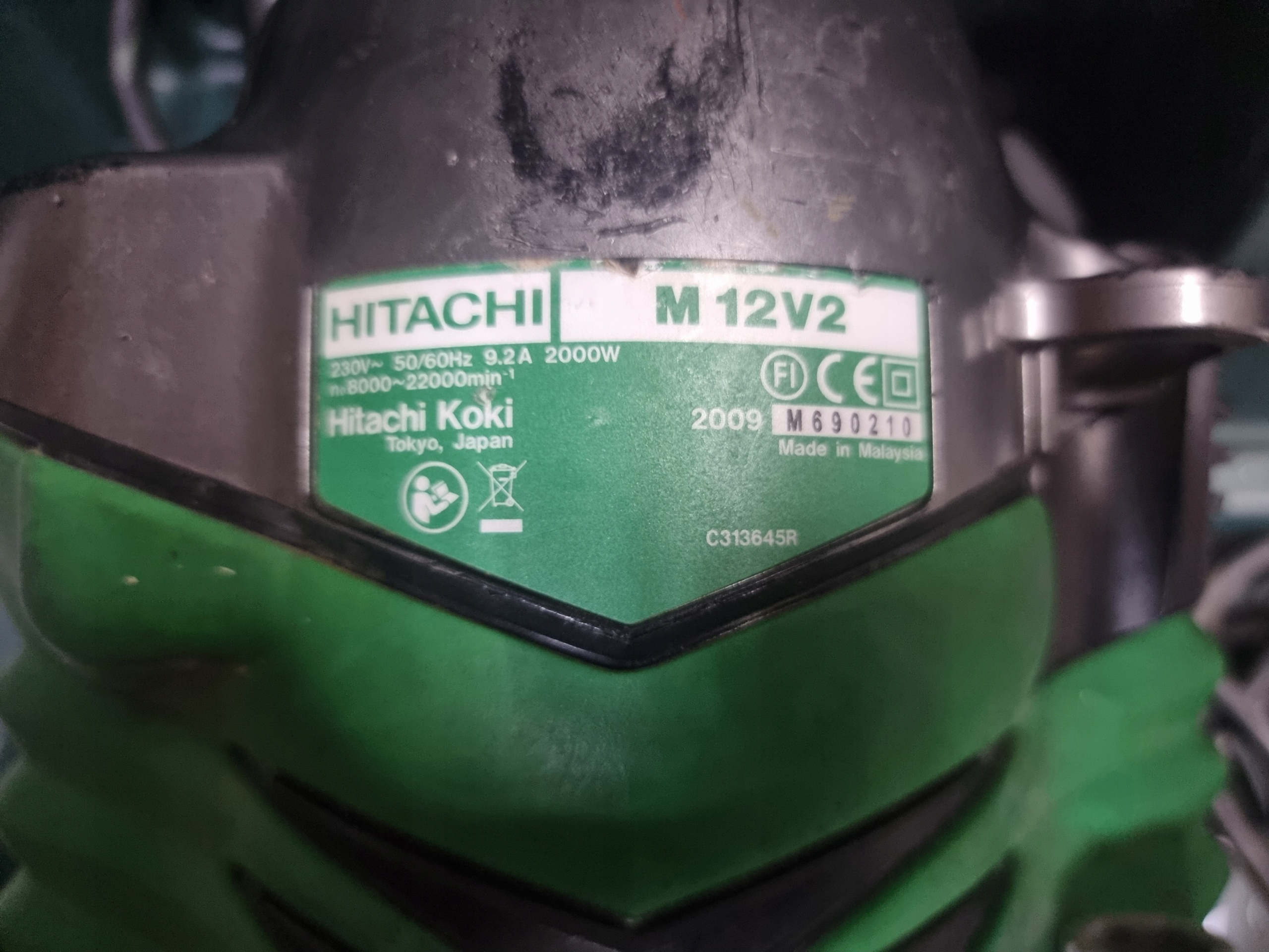 Hitachi M 12V2. Źródło zasilania: Prąd przemienny, Moc pobierana: 2000 W. Waga produktu: 6,3 kg. Prędkość biegu jałowego (min): 8000 RPM, Prędkość biegu jałowego (max): 22000 RPM